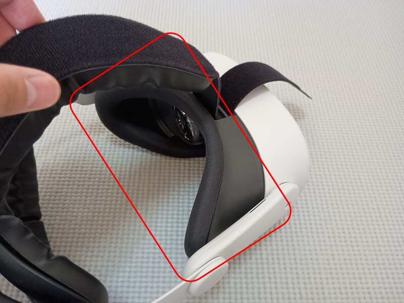 後頭部を支えるクッション。初期ストラップと比べて安定感と快適さが天と地ほど違います。冗談抜きにふかふかの羽毛布団の上に横になったような感覚。