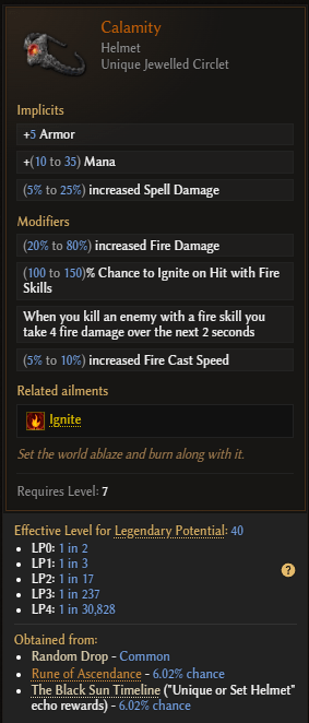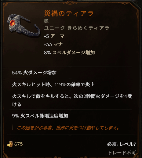 今回拾ったCalamityはLP0の品でしたが、もしLP2の品に強力なAffixを1~2個つけることが出来たら最終品にしてもいいと考えています。
