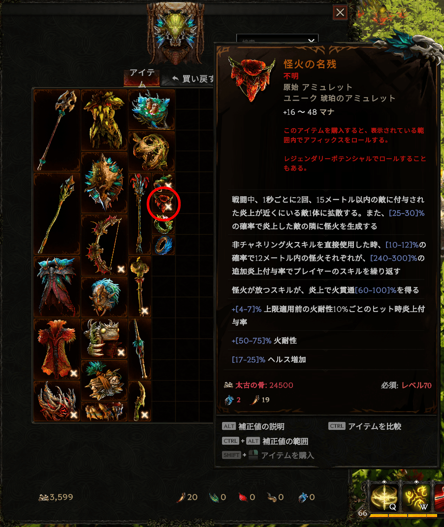 固有ユニークの「怪火の名残」という指輪が欲しいのですが、必要なリソースがかなり多い。相当な回数の周回が必要そうで、手に入れるのはかなり先になりそうです。