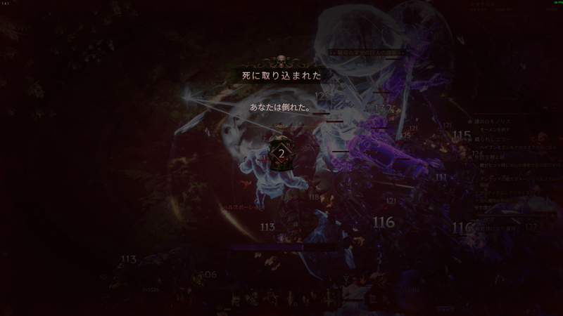 最低レベルの時間軸だったのですが、これだけ難易度がぶっ飛んでいて今シーズン初死。すごい勢いで毒やら何やらがスタックしていくし敵も固いし、難易度おかしくない?と正直思いました。