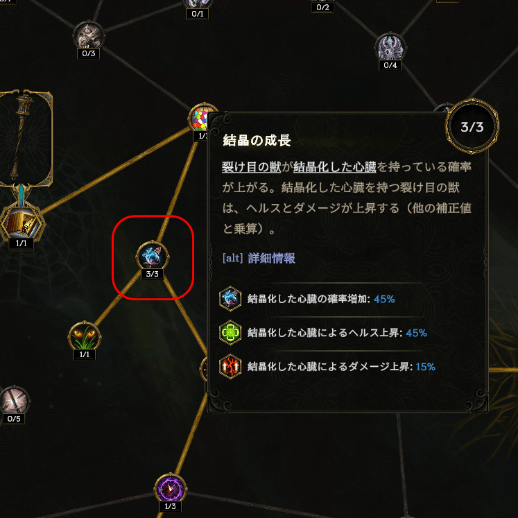 このように心臓が直ドロップしたのは、織られしツリーのこのノードを取得していた恩恵が大きいと思います。Primordialの報酬にいち早くアクセスしたいなら、このノードは取る価値あり。