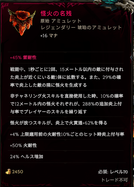 怪火というオブジェクトの生成、炎上付与率UP、ヘルス増加など、とても強力な効果が揃っていると思います。