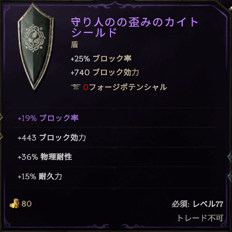ユニーク盾「ラーエーの光」はディフェンス面では微妙と判断し、出来合いのイグゾルト盾に置き換えたら、通常のエコー攻略は少し安定しました。