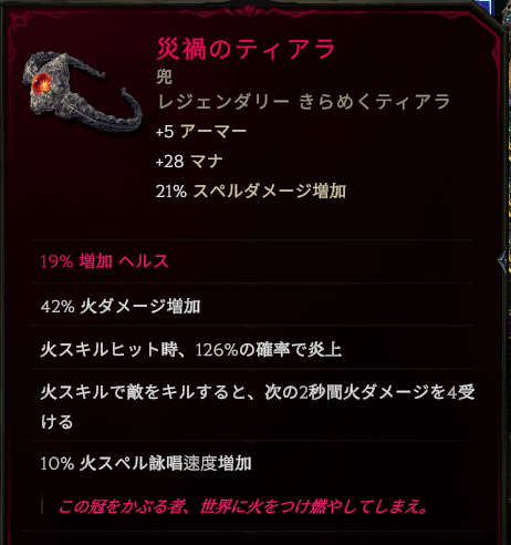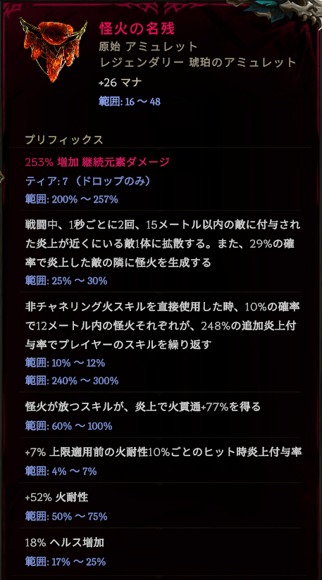 これでFire DoTビルドにとってはかなり使える一品になったと思います。まあ別なAffixを付けたくなったらまたアミュレットから狙い直すのは無理ではありません。