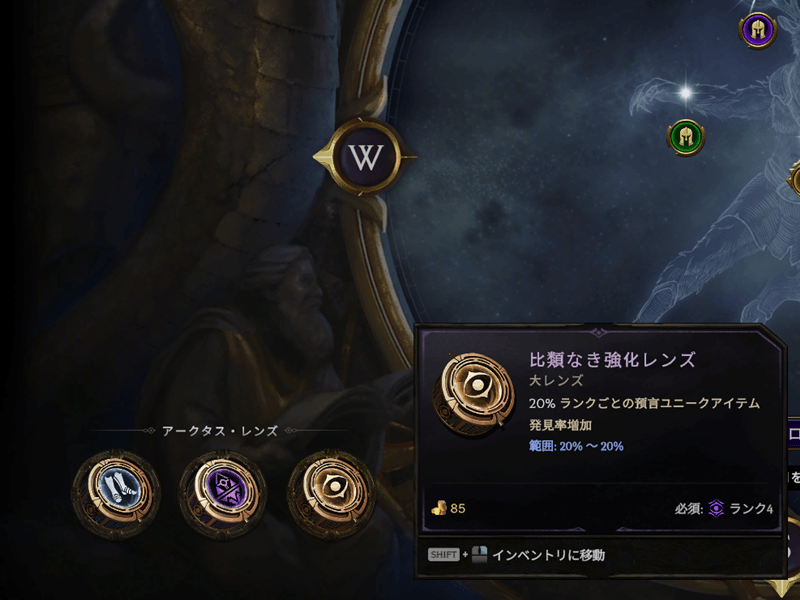 SSF派閥Circle of Fortune(CoF)のランクがようやく9になったので、レンズを3つ目まで入れて予言を使いまくります。