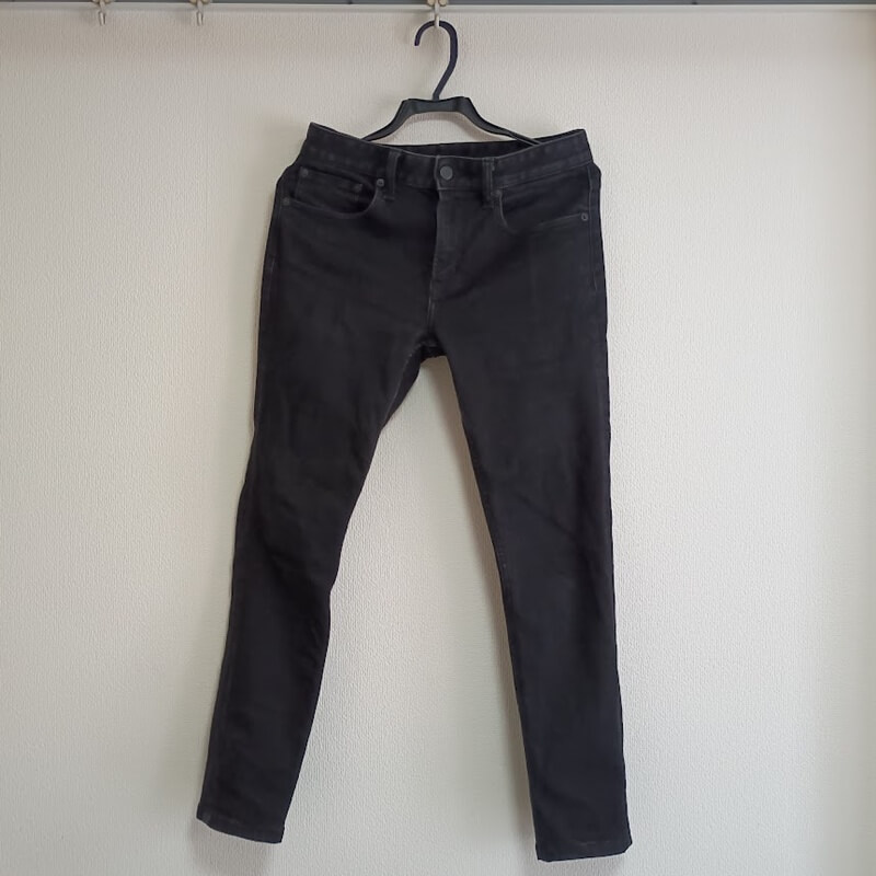 ちなみに僕が愛用していたのは2024年に購入したGUの「ウルトラストレッチスキニージーンズ」。こっちのサイズは29。上記のスリムジーンズより1サイズ小さいとはいえ、シルエットは全然違います。