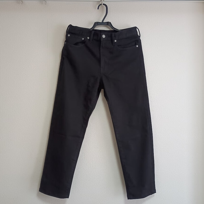 写真はオンラインで注文して、裾上げもお願いしたものになります。撮影時点ではまだ洗っていない状態ですが、一度試しに洗ってからもサイズ感はほとんど変わりませんでした。