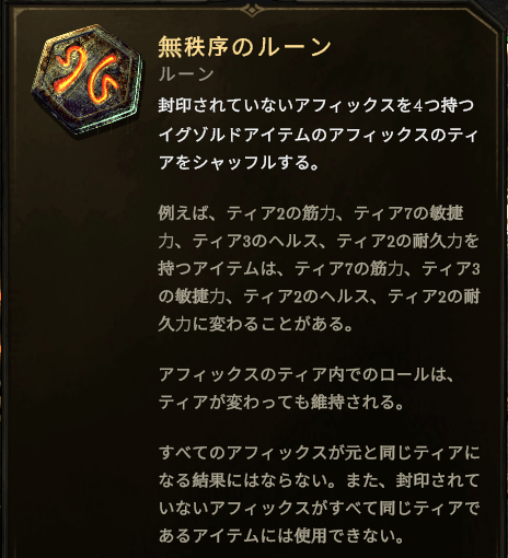ちなみに次の無秩序のルーンはAffixが4個ないと適用できないため、